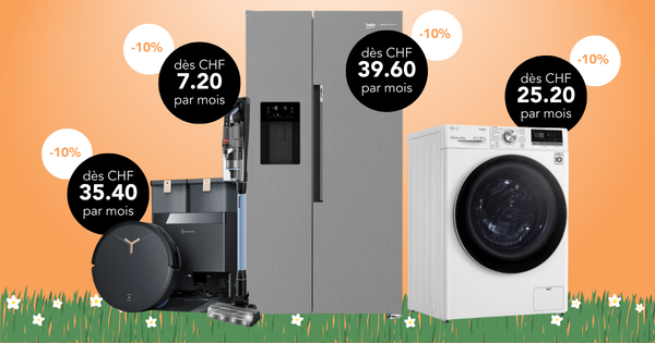 Profitez de 10% de rabais sur les aspirateurs, machines à laver, réfrigérateurs, grills, outils et bien plus encore – payable confortablement en 36 mensualités sur facture.