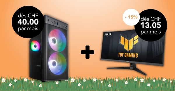 À l’achat d’un PC Gaming, profitez de 15% de rabais sur une sélection de moniteurs – votre bundle est payable en 36 mensualités sur facture.